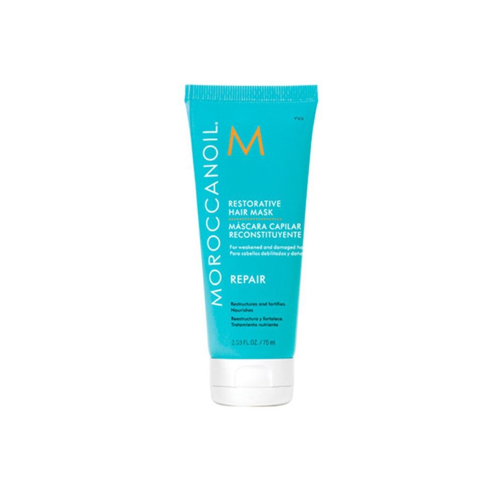 Moroccanoil Restorative Hair Mask Travelsize är avgörande för hår som är försvagat, skadat eller färgat. En 5–7 min. vitaliserande behandling som snabbt bygger upp hår som är i behov av intensiv reparation. Dess effektiva formula är rik på arganolja och vegetabiliska proteiner, vilket bidrar till att stärka och återuppbygga håret som är skadat av kemiska behandlingar eller överdriven styling med värme. Masken tillför protein till det försvagade håret, så håret blir starkare och vackrare än tidigare.